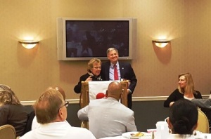 Several of our members spoke at the breakfast event: President Jeff Peck on health and safety; Vice-President Delfina Guevara on the need for more government oversight; Chris Bader on safe staffing; and Debra Rausch on protecting the mission of the hospital.