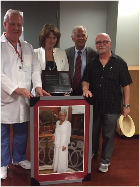 A plaque honoring Donna for her service at the hospital was shown to the assembled group. The plaque is being placed in the Pediatrics Department.