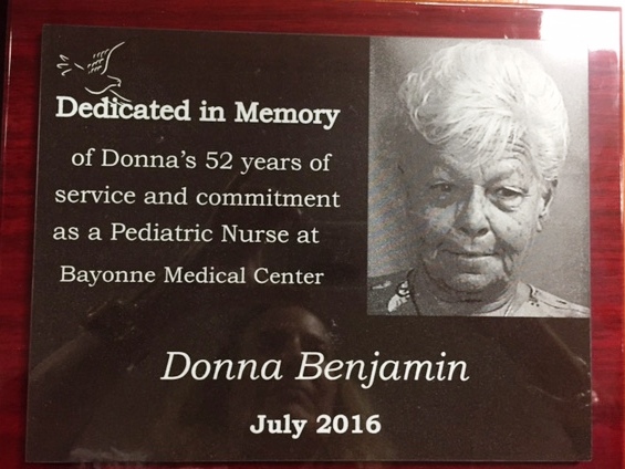 Donna Benjamin, the recently-deceased, former President of HPAE Local 5185 and a Pediatric nurse for 52 years at Bayonne Medical Center, was honored yesterday at the hospital by co-workers, political leaders, and her union brothers and sisters.