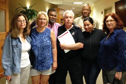 HPAE Local 5091 officers attended a Bergen County Freeholders’ meeting last night to deliver hundreds of signatures on a petition calling on the freeholders to set strong standards in choosing a new operator at their hospital, Bergen Regional Medical Center. Local 5091 President Jeff Peck urged the freeholders not to repeat the mistake that was made 18 years ago when the County selected the current operator, Solomon (Bergen Regional Medical Center LP), to operate the hospital.