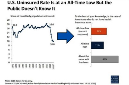 Why don’t more people know this? It’s not that the news media have failed to cover the story. There have been regular news reports about government and private surveys showing progress on this issue because of the ACA.