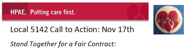 On November 17, we need all members to wear buttons and take part in flyering the hospital to show our solidarity and support for a good contract.