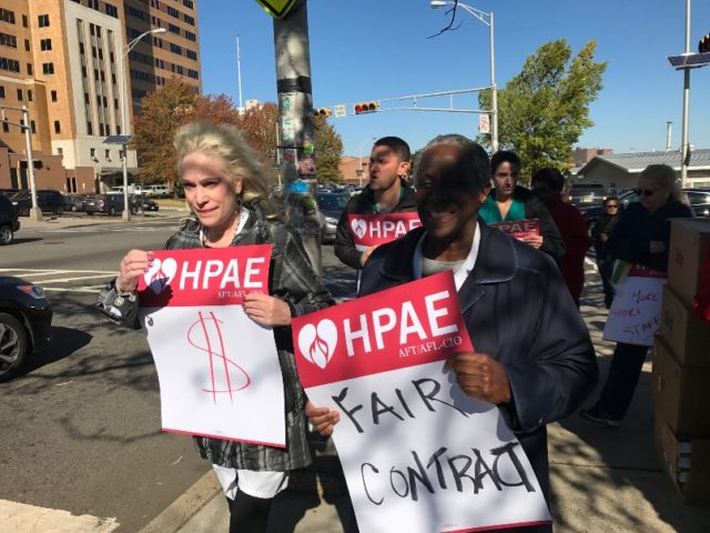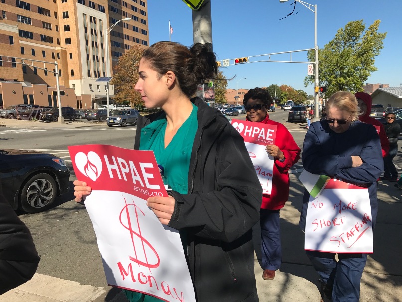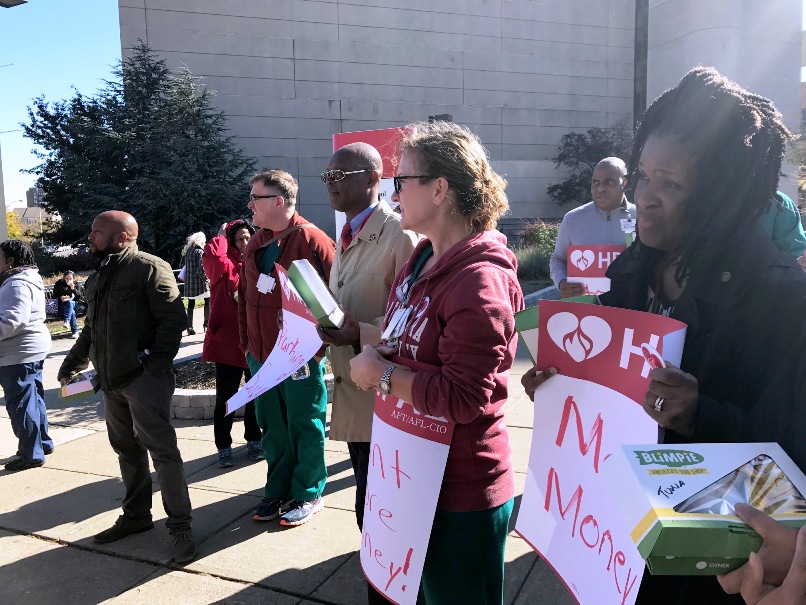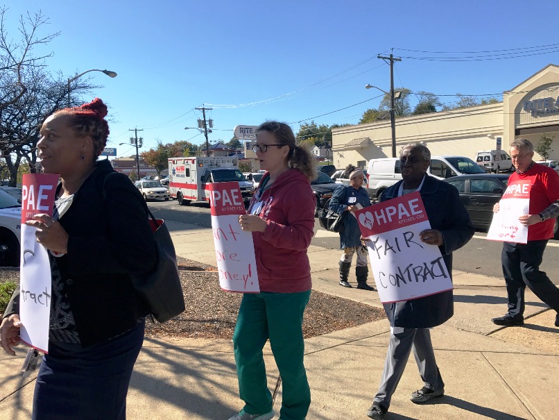 Members of HPAE Locals 5089 (RNs) and 5094 (non-nursing professional staff) at University Hospital (UH) in Newark held a lunchtime rally and picket today as a show of unity between the locals and to kick off their contract campaign.