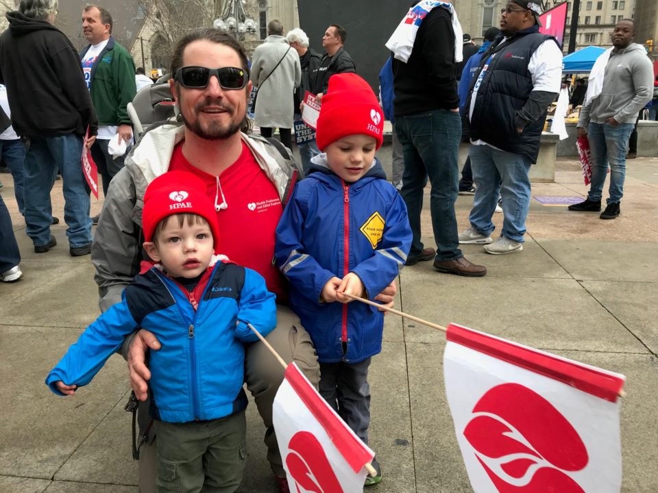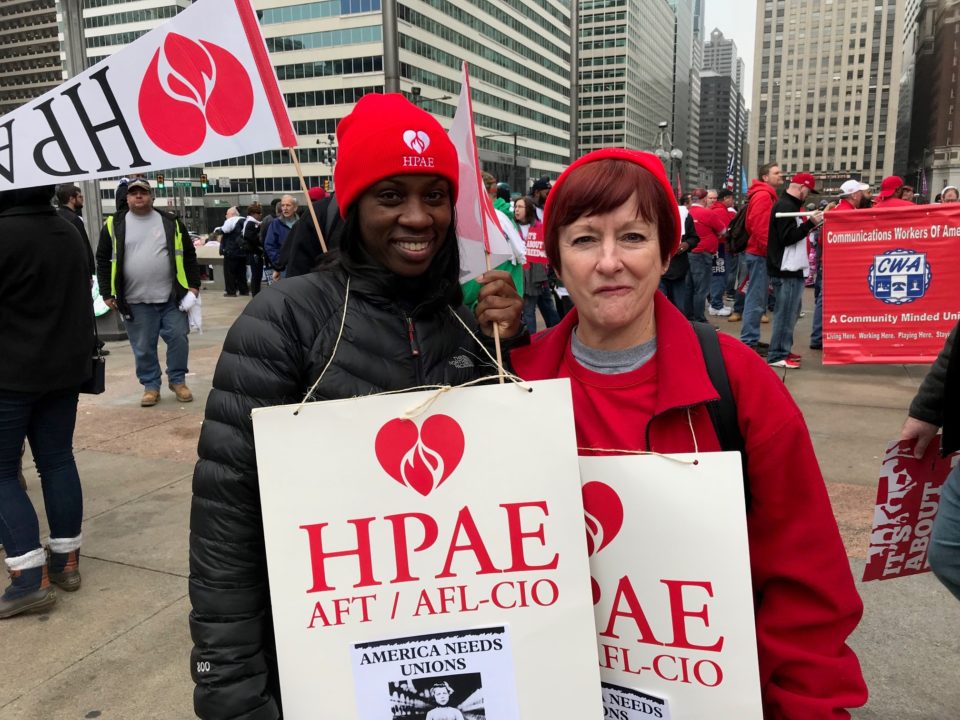 At the rally we carried signs that said:  American Needs Unions.  We Won’t Go Back.