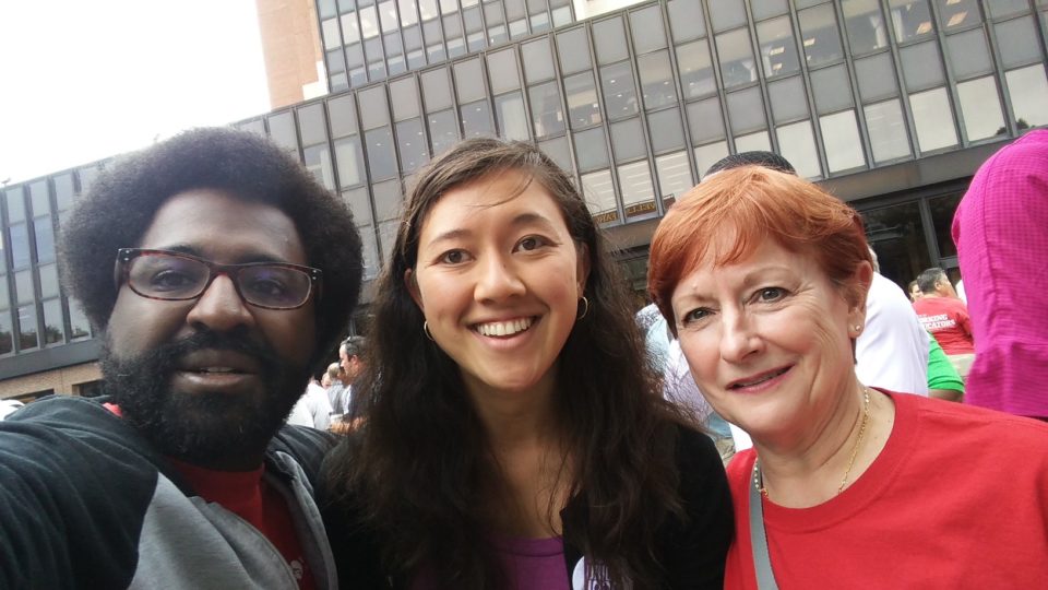 Mayor Jim Kenney was there to support labor in the city and the surrounding counties. Marcus Presley and Sue Clements represented HPAE and were joined by Sandra Jeong and other SEIU members at the rally.