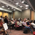 Throughout the meeting, members from both organizations stood with picket signs raised at the back of the room, hollering ad-lib commentary about their grievances with Barchi’s handling of these issues — “Bargain with the Union,” “Do your job” and “You expanded your contracts, how about the workers?” to name a few.