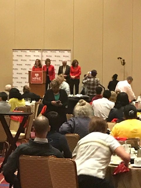 Local 5106 members had a great time at the recent HPAE State convention at Harrah’s in Atlantic City on Oct. 4 and 5. Richelle Kozak, Marlene Grant, Michele Morton, Venus Weaver, Charles Bowen, Cam Truong, Sue Clements and guest Gerry Dever pictured here. We witnessed history as the founder of our union, Ann Twomey, and VP Bernie Gerard passed the torch to our newly elected officers: Debbie White, President, Barbara Rosen, Vice President and Alexis Rean Walker, Secretary Treasure. It was a bittersweet moment for all as we said a sincere thank you and wished Ann and Bernie a very happy retirement.