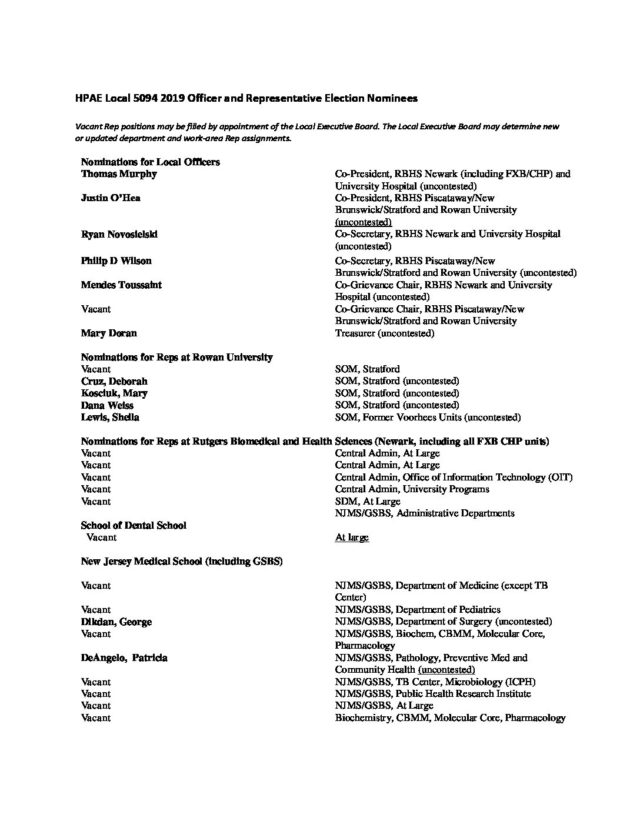 HPAE Local 5094 2019 Officer and Representative Election winners 2