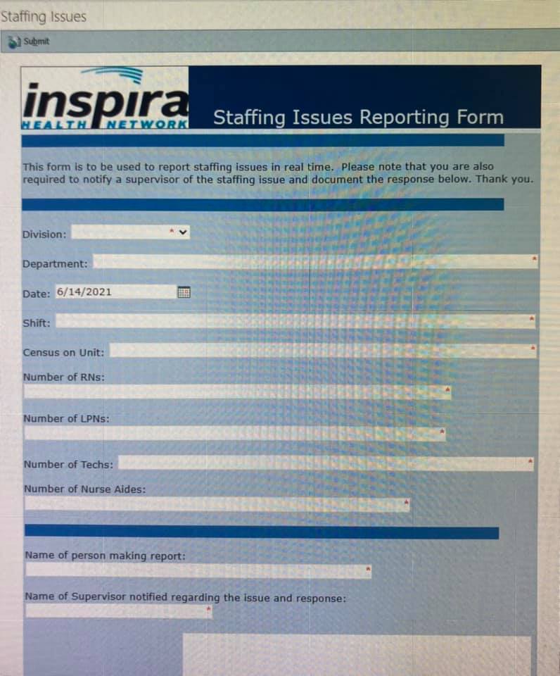 We know there is limited space, but please try to be thorough in your reporting. We often get staffing forms that are incomplete and thus hard to follow-up with. Please fill out your department, and your whole name, in case we have questions or would like to follow up on some details with you. If there is a staffing issue on a unit, one form for that shift is enough to report it. We address each and every staffing form we get, so if several nurses are concerned/affected, you can add their names to your form with their permission instead of them filling out separate forms of their own for that shift.