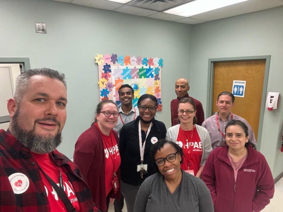 Unity photos show that HPAE membership supports our HPAE Bargaining Teams and our campaign for strong contracts for all union members at Rutgers. Add your team’s unity to the wave of solidarity building across the state. Use the unity placard and send pics our Organizer, Suzanne at SCollado@hpae.org.
