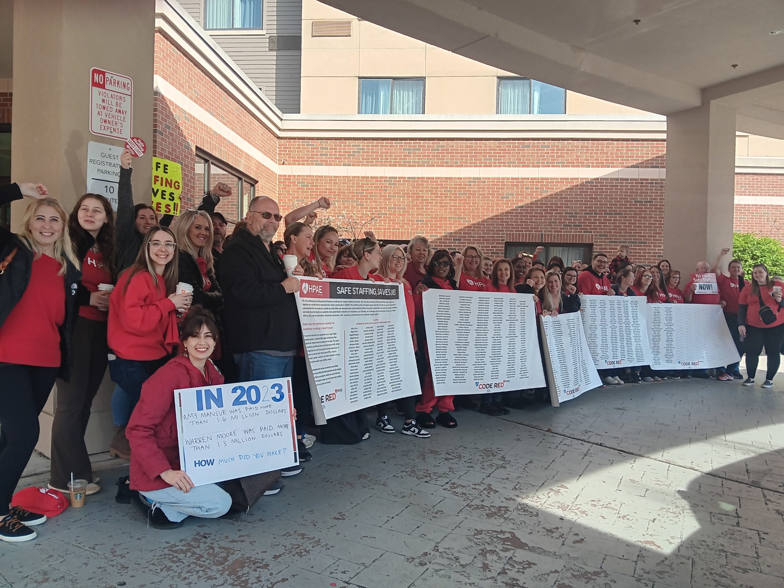 One thousand ninety-four RNs from across the Inspira network have signed the petition for a fair contract! Today, 119 of us joined our Local bargaining teams at the first day of bargaining to deliver our petition and show Inspira management that we remain united in our demands for safe staffing and fair wages. Members from all three HPAE Locals at Inspira gathered to support our bargaining committees and urge the bosses to agree to a fair contract.