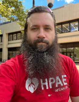Hi, I’m Justin, and I’d be honored to be your rep. I’ve been a part of our union for all three years I’ve worked at Rutgers, and in the research committee for a little over a year now! I work for CINJ in the population science department based out of 120 Albany Street. I’m a fourth-generation union member, with my father, grandfather, and even great-grandfather holding leadership positions at IBEW Local 164. I hope to bring the same effective and compassionate leadership to HPAE by strengthening our organization and building both community and camaraderie in the research departments and beyond. I’m a scientist at heart, and that means I won’t hesitate to experiment, listen to feedback, and do whatever it takes to find the best results for all of us! Thank you for your time and consideration.